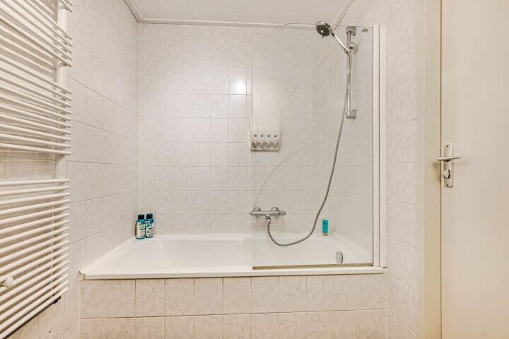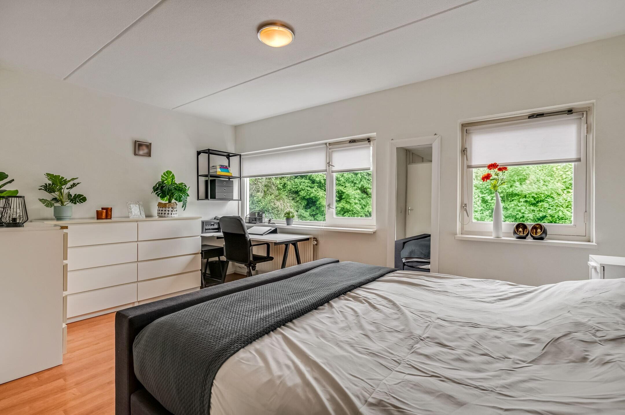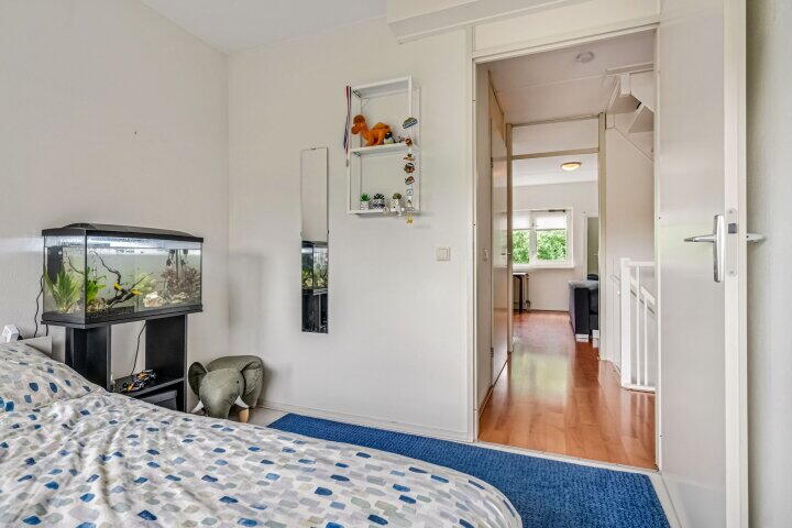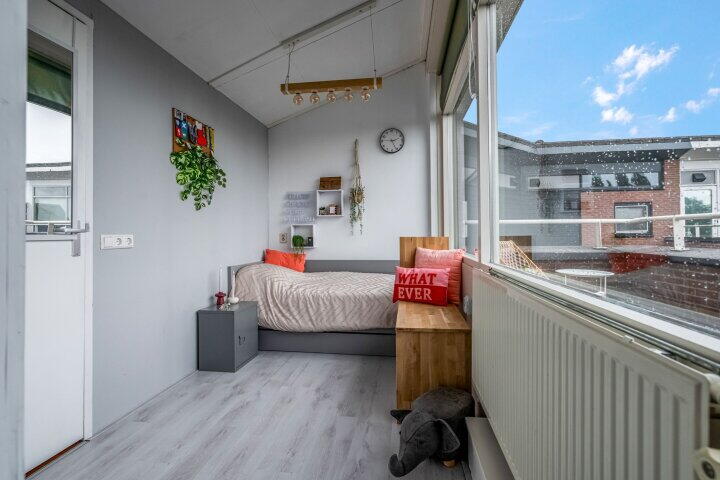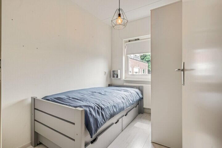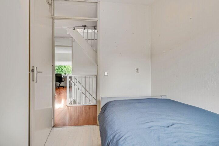 De woning beschikt over 4 slaapkamers. Drie bevinden zich op de eerste verdieping en eentje op zolder. De hoofdslaapkamer beslaat de volledige achterzijde van de woning en heeft met maar liefst 17 vierkante meter oppervlakte meer dan genoeg ruimte voor een groot tweepersoonsbed, een kledingkast en een tv-meubel. Slaapkamer 2 en 3 zijn circa 7,4 en 5,6 vierkante meter groot. De badkamer is voorzien van een ligbad met douche, wastafel en toilet.
