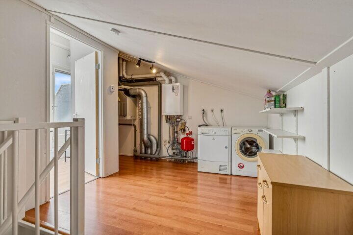 De zolder is in tweeën gesplitst en beschikt over een riante ruimte voor de wasmachine, droger, cv-ketel (Intergas HR-107 van 2021) en de WTW installatie. De andere zijde van de zolder bevindt zich een verrassend leuke slaapkamer met een prachtig dakterras. Ideaal voor kinderen!